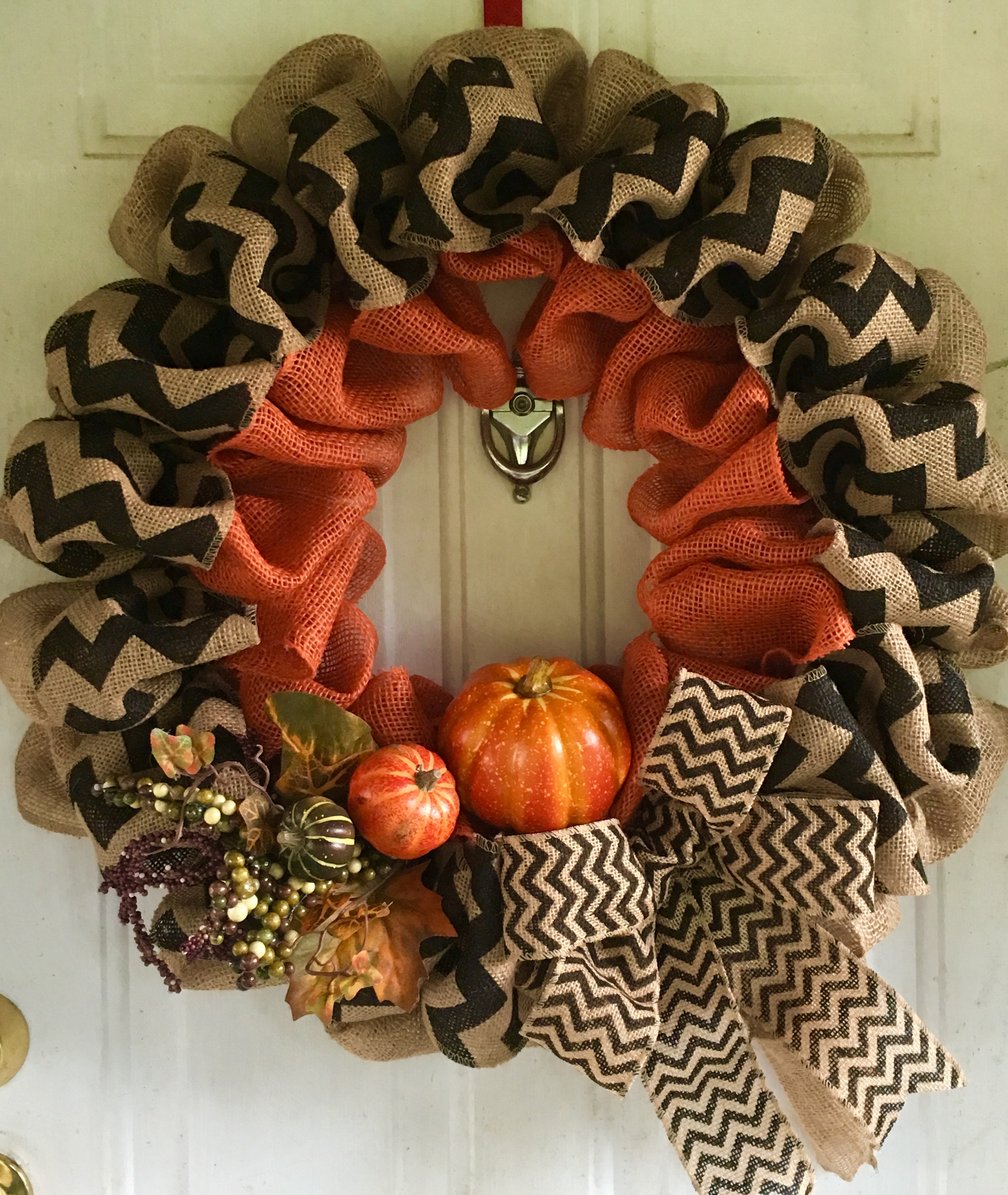 Chevron and Burlap Pumpkin Fall Wreath
